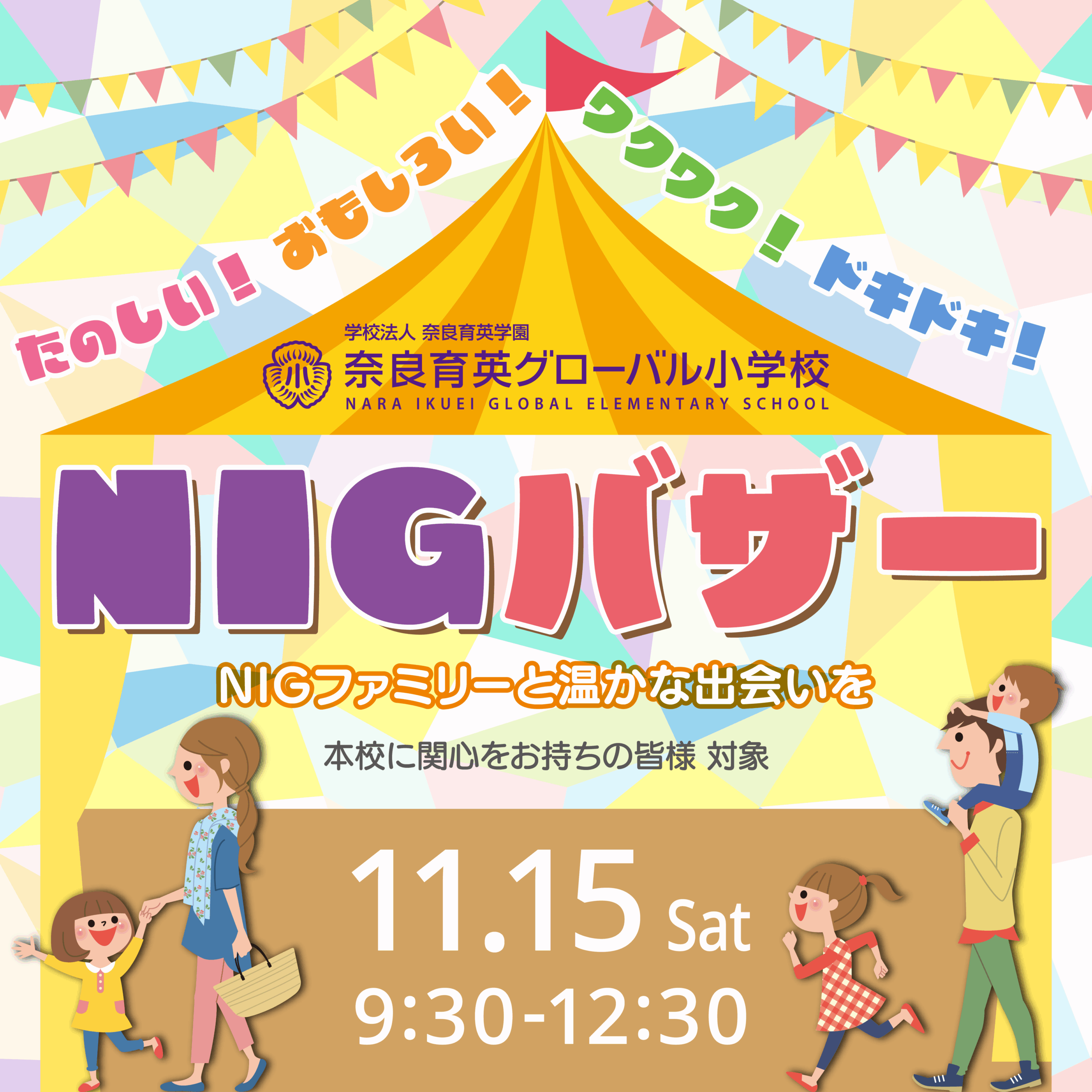 今年も、奈良育英グローバル小学校で『NIGバザー』を開催いたします!