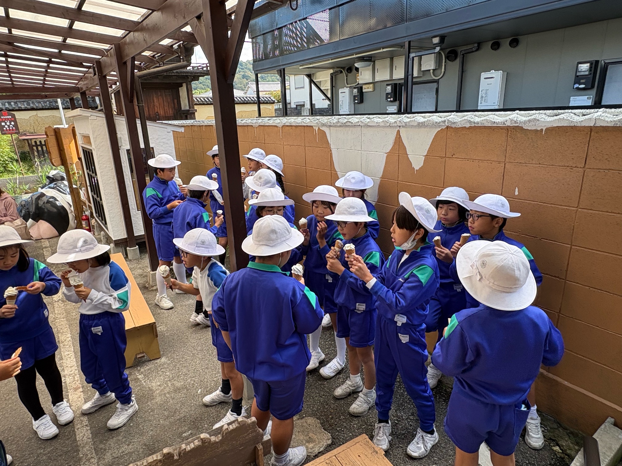 「おいしい!」搾りたての牛乳で作ったソフトクリームもいただきました。